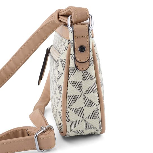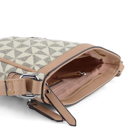 Dámská módní crossbody kabelka s trendy potiskem a kontrastním lemováním.