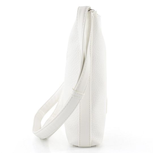 Dámská crossbody kabelka v jednoduchém střihu a bílé barvě, s nastavitelným popruhem.