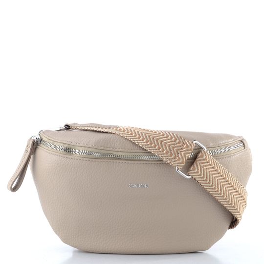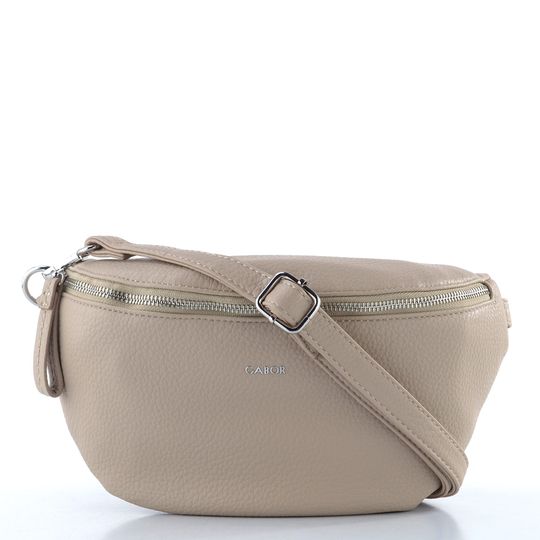 Dámská crossbody kabelka/ledvinka od značky Gabor je ideálním společníkem pro jarní a letní dny. Její oblý ledvinkový tvar a menší střih perfektně pojme všechny nezbytnosti, které potřebujete mít po ruce. Vyrobena z poddajné strukturované syntetiky, kabelka v béžové barvě s lehkým nádechem do šedé se snadno kombinuje s různými outfity.