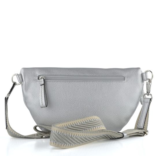 Vyberte si dámskou crossbody kabelku/ledvinku od značky Gabor, která spojuje eleganci s praktickým designem. Tento model je perfektní pro ty, kdo hledají stylový doplněk na jaro a léto. Kabelka je vyrobena z poddajné strukturované syntetiky ve stříbrné metalické barvě, která dodává šmrnc každému outfitu. Praktické rozměry s horní šířkou 27 cm a výškou 17 cm poskytují dostatek prostoru pro vaše nezbytnosti. Součástí jsou dva odepínatelné ramenní popruhy – elegantní a sportovní, takže ji můžete přizpůsobit každé příležitosti. Kování ve stříbrné barvě a promyšlené vnitřní uspořádání zaručují, že budete mít vše potřebné vždy po ruce.