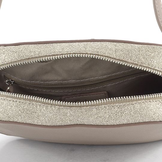 Menší dámská crossbody kabelka v jednoduchém provedení s glitter blyštivou vsadkou v místě zipu.