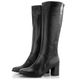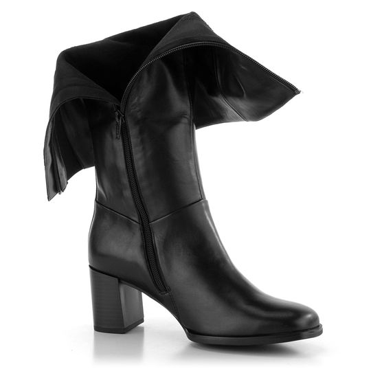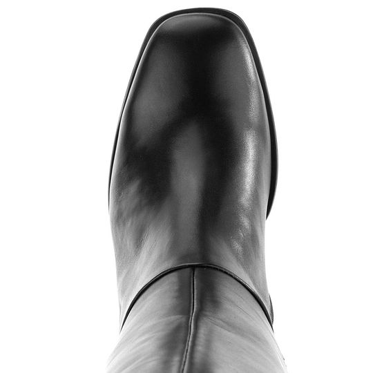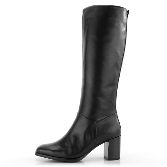 Elegantní dámské kozačky velikosti S, v koženém provedení a na stabilním podpatku.