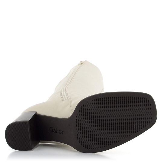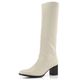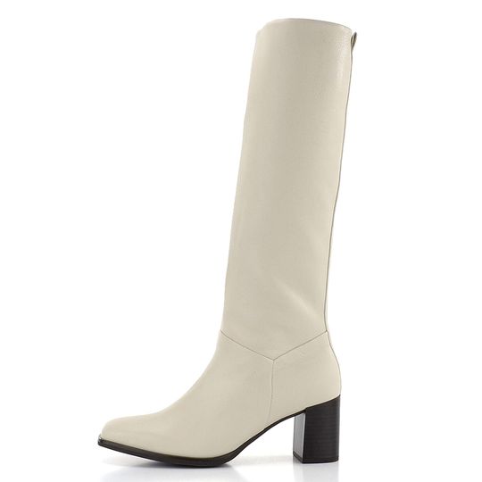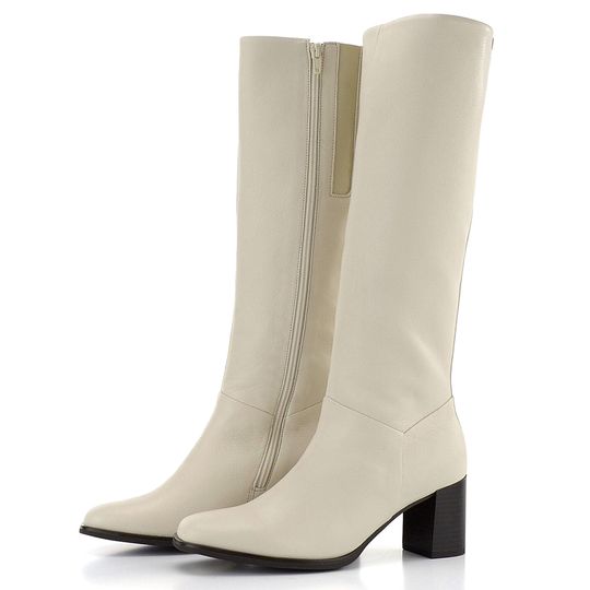 Elegantní dámské kožené kozačky velikosti S, ve světlém provedení a se stabilním podpatkem.
