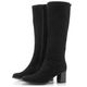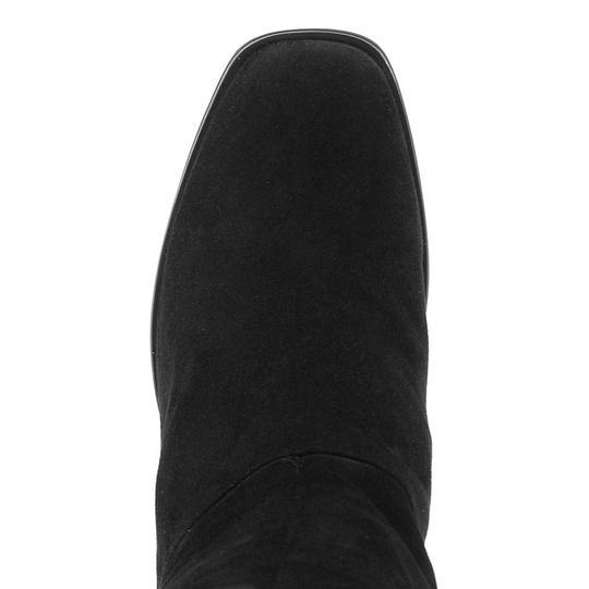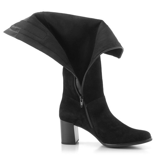 Elegantní dámské kozačky pro úzké lýtko, vyrobené z černé semišové kůže a se stabilním středně vysokým podpatkem.