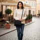 Menší crossbody kabelka v černé barvě s pohotovostní kapsou a nastavitelným popruhem.