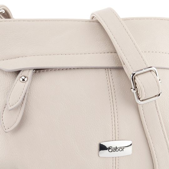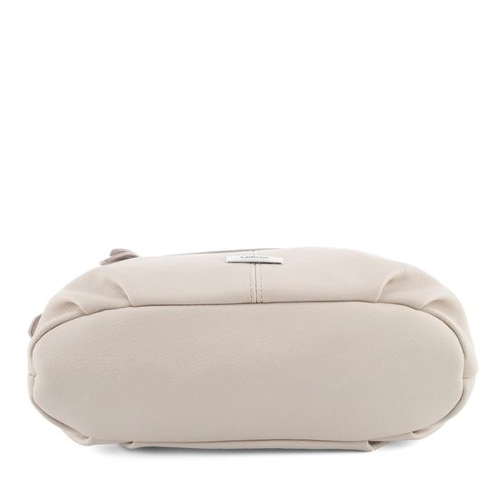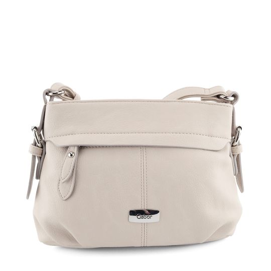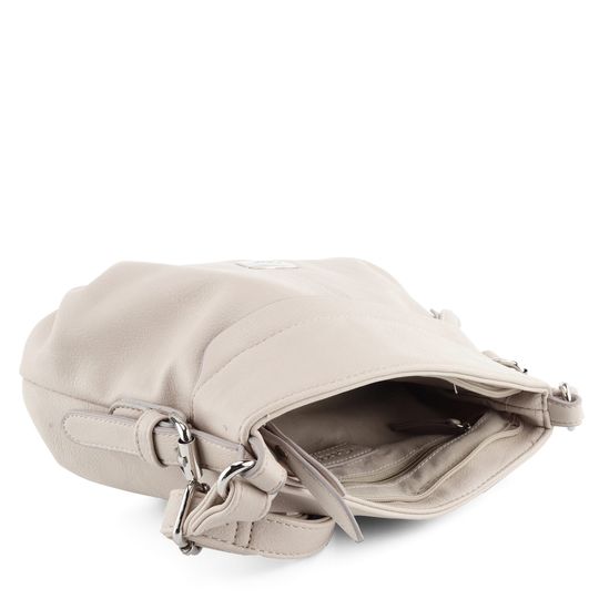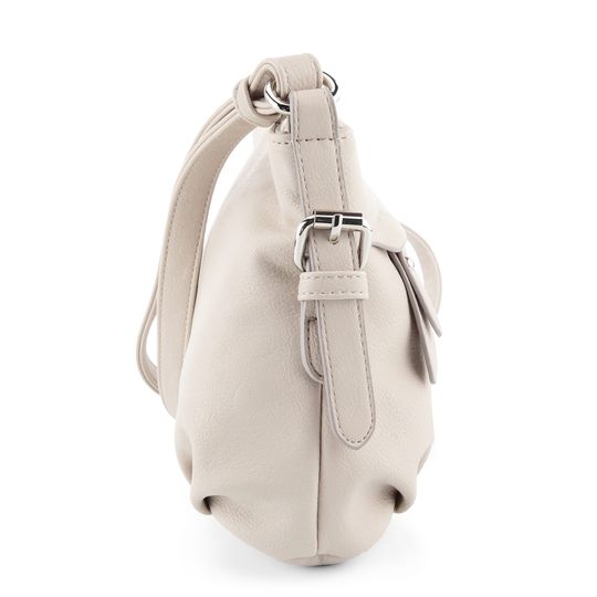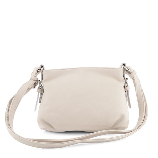 Dámská crossbody kabelka ve světle béžové barvě s vnější pohotovostní zipovou kapsou.