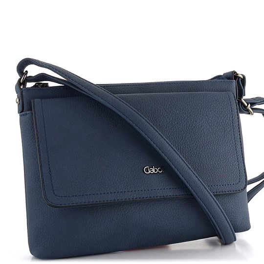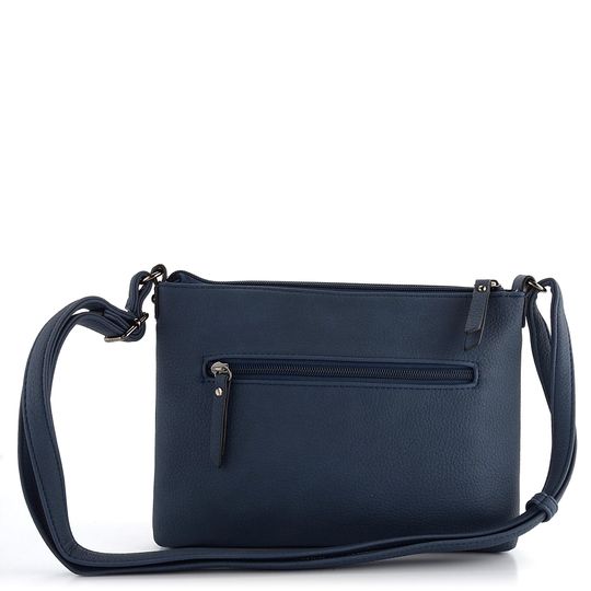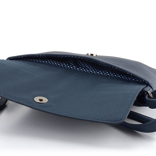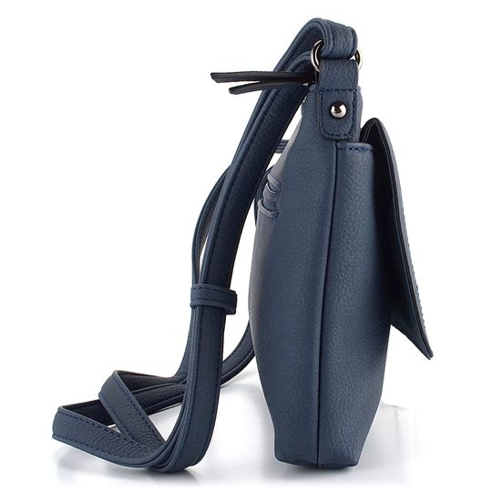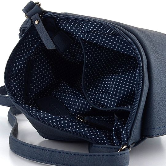 Menší crossbody kabelka v tmavě modrém odstínu s pohotovostní kapsou a nastavitelným popruhem.