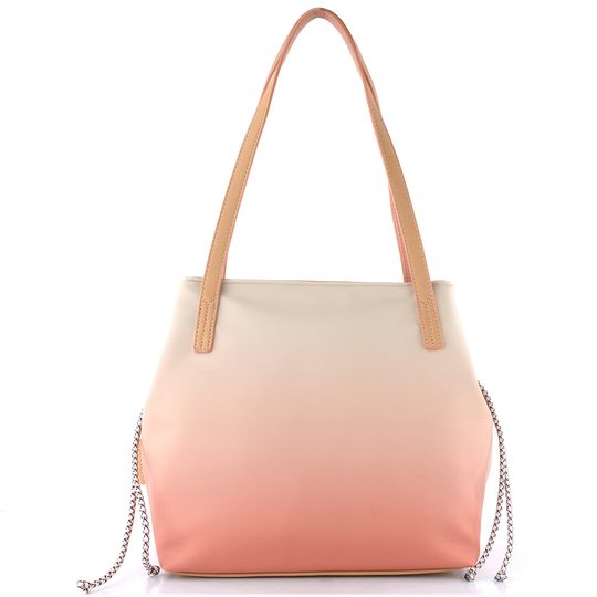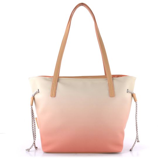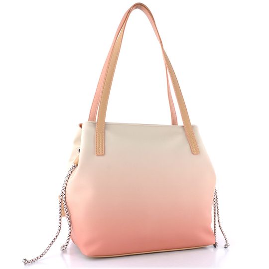 Dámská shopper kabelka ve stínované lososové barvě se stahovacími boky.