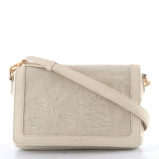 Dámská kabelka od značky Gabor spojuje elegance a praktičnost v jednom. Její světlá béžová barva a ozdobná květinová výšivka na klopě dodávají kabelce jedinečný šarm, který oceníte při každé příležitosti. Vyrobena z kombinace pevného plátna a jemně strukturované syntetiky, nabízí dostatek prostoru pro vaše nezbytnosti.
