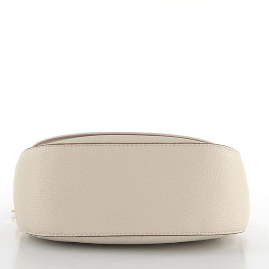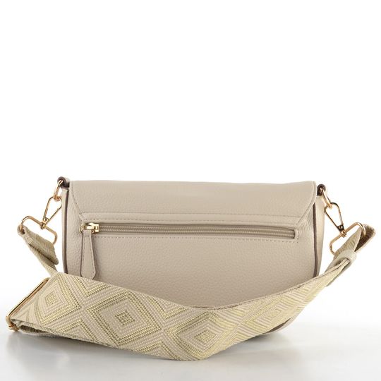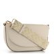 Menší dámská crossbody kabelka ve smetanové barvě se dvěma vyměnitelnými popruhy.
