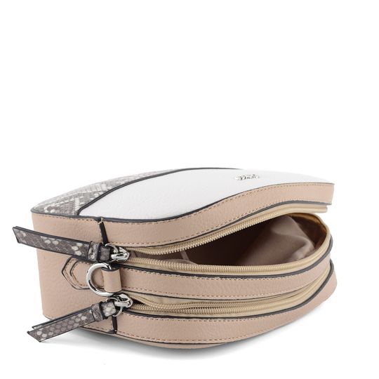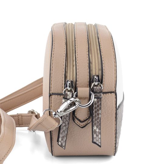 Kombinovaná dámská crossbody kabelka s módní hadinkou a se dvěma samostatnými zipovými kapsičkami.