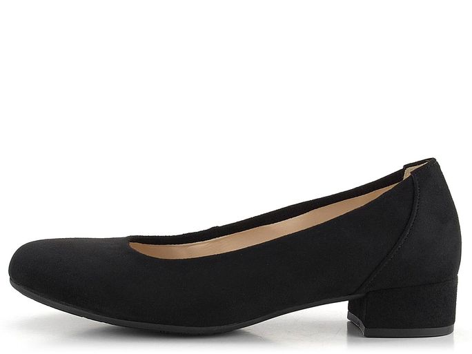 Dámské lodičky značky Gabor jsou ideální volbou pro podzimní a zimní sezónu. Tyto lodičky v elegantní černé barvě se vyznačují širokým a stabilním podpatkem o výšce 3 cm, který zajišťuje pohodlí i při delším nošení. Svršek je vyroben z kvalitní broušené textilie, která imituje semiš, a dodává botám luxusní vzhled.