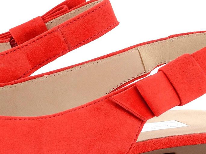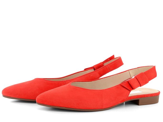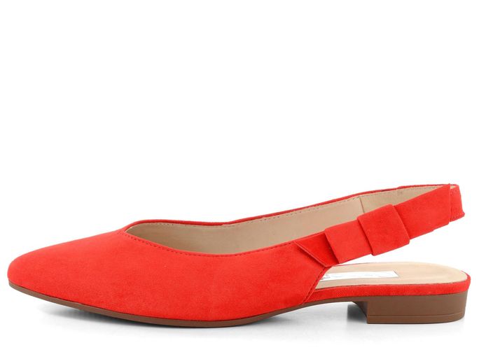 Korálově oranžové lodičky ze semišové kůže, s volnou patou a na nízkém pohodlném podpatku.