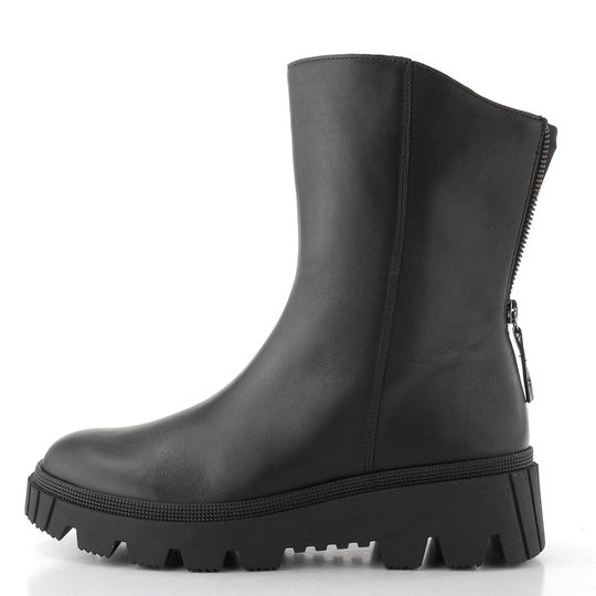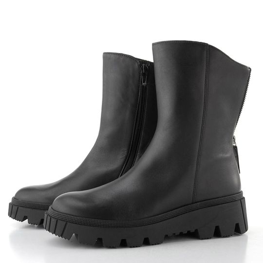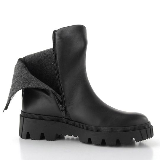Dámský zateplený kotník na robustní podešvi, s postranním zipem a vsadkou v lýtkové části umožňující rozšíření obvodu.