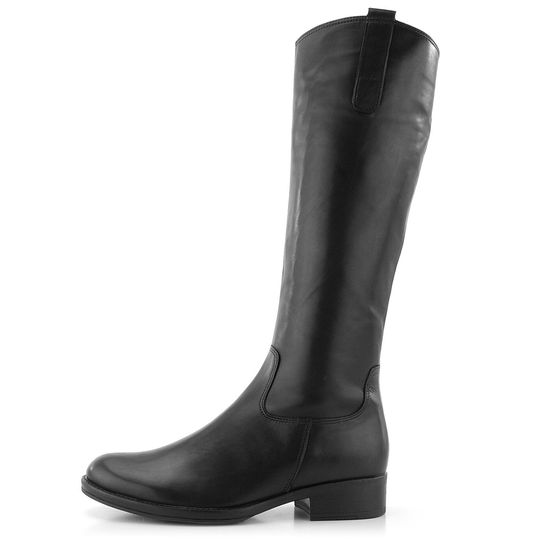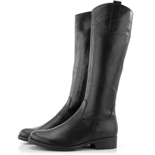 Dámské hladké kožené kozačky v černé barvě a ve velikosti M - pro standardní typ lýtka.