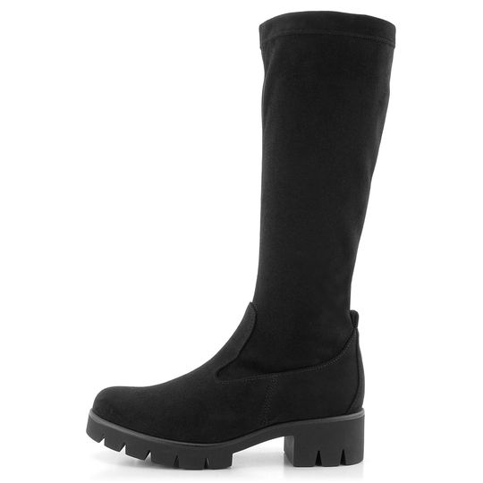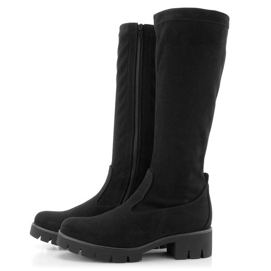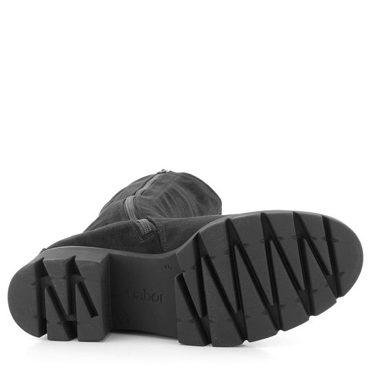 Elegantní a pohodlné kozačky od značky Gabor vás nadchnou svým designem a funkčností. Tyto dámské kozačky s pružným lýtkem jsou ideální volbou pro podzimní a zimní sezónu. Díky kulatému tvaru špičky a postrannímu zipu po celé délce se snadno obouvají a poskytují maximální komfort. Svršek je vyroben z hebké broušené textilie, která v lýtkové části pruží, což zajišťuje pohodlné nošení pro standardní typ lýtka s mírnou variabilitou. Výška kozaček je 37 cm bez podpatku a horní vnější obvod se pohybuje mezi 36 až 39 cm (pro velikost 38). Široký podpatek o výšce 4,5 cm s hrubým vzorkem dodává stabilitu a pohodlí při chůzi. Uvnitř najdete měkkou vyjímatelnou stélku s textilním potahem a teplejší podšívku s krátkým vlasem ve spodní části. Tyto kozačky jsou nejen stylové, ale také praktické a odolné díky lepenému výrobnímu způsobu.