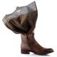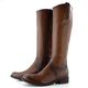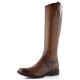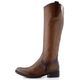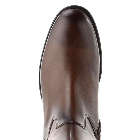 Dámské hladké kozačky v hnědé barvě a ve velikosti S, vhodné pro úzký typ lýtka.