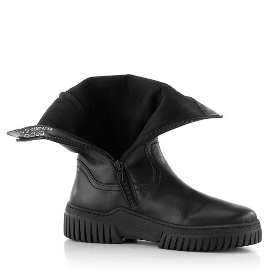 Dámské černé polokozačky s variabilním obvodem, bez vnitřního vyteplení a s módní robustní podešví.