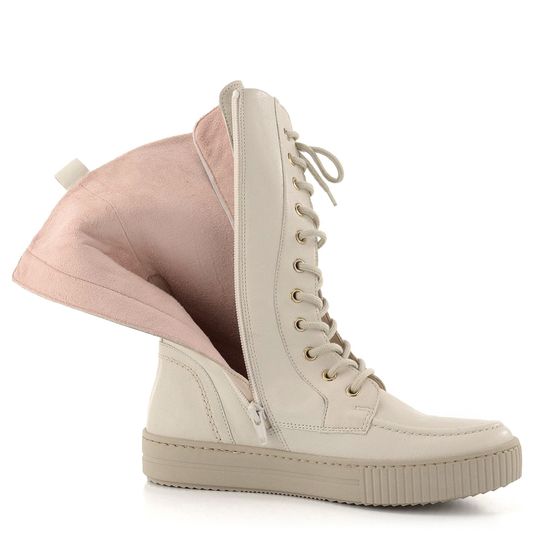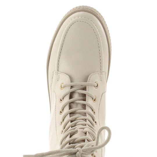 Elegantní a pohodlné dámské polokozačky značky Gabor z kolekce 2021/22 jsou ideální volbou pro podzimní a zimní sezónu. Tyto šněrovací boty v krémové barvě (odstín panna) se skvěle hodí jak k sukni, tak ke kalhotám. Svršek z kvalitní hladké kůže a módní prošití dodávají botám stylový vzhled. Kulaté šněrování s kovovými průvlaky ve zlaté barvě a zip na vnitřní straně zajišťují snadné obutí. Uvnitř naleznete mírně teplou podšívku z micro textilie a měkkou vyjímatelnou stélku s textilním potahem. Výška obuvi je 24 cm bez podešve, která je vyrobena z latexu a zajišťuje pohodlí při chůzi. Díky šitému výrobnímu způsobu jsou boty velmi pohodlné a flexibilní. Pro zvýšení odolnosti vůči vlhku doporučujeme použít vhodné impregnační přípravky. Tyto polokozačky jsou ideální do města i na lehkou procházku venku.