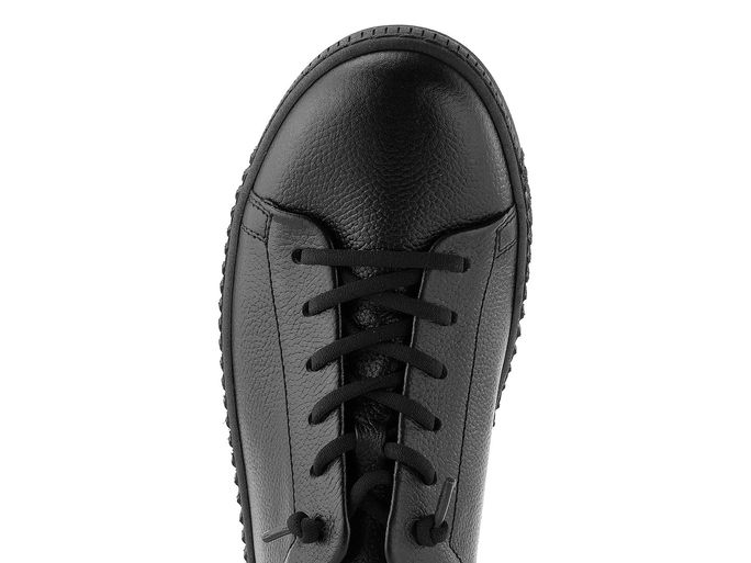 Dámské kožené tenisky v černé barvě, s pružným šněrováním a vyšší pohodlnou podešví.