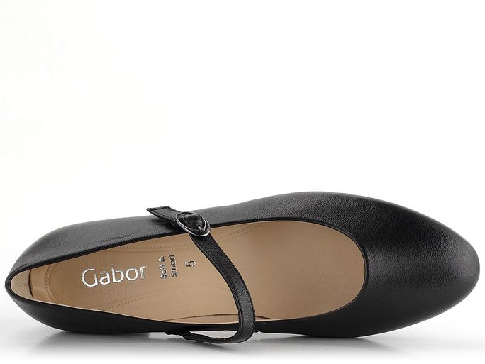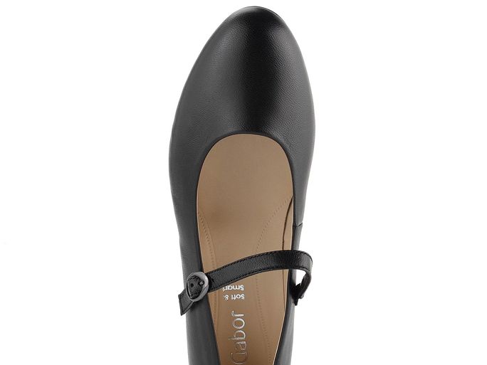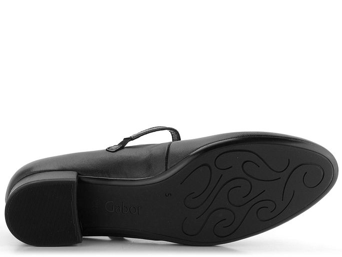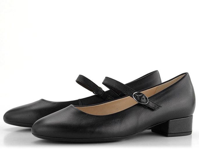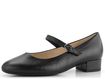 Dámské lodičky z černé hladké kůže s měkkou stélkou, nártovým páskem a pohodlným širokým podpatkem.