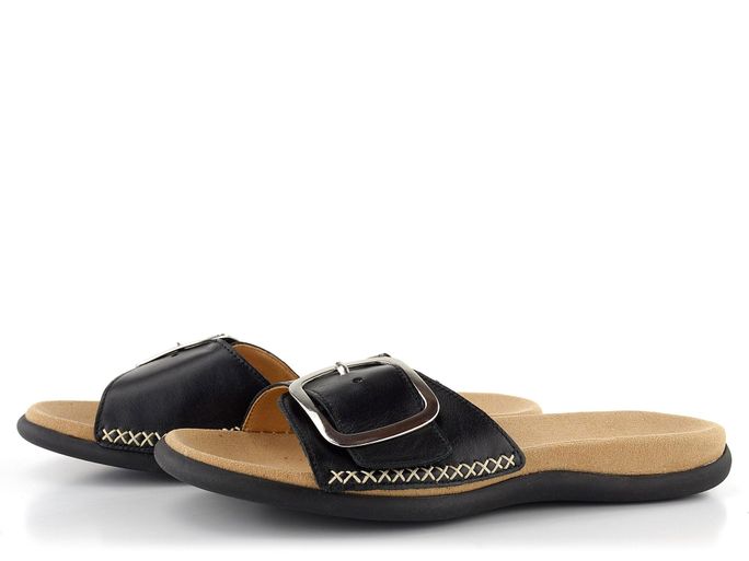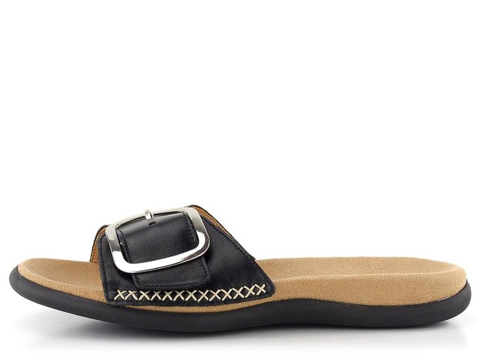 Dámské pohodlné pantofle z hladké kůže v černé barvě, s upínáním na suchý zip a s anatomicky tvarovanou stélkou.