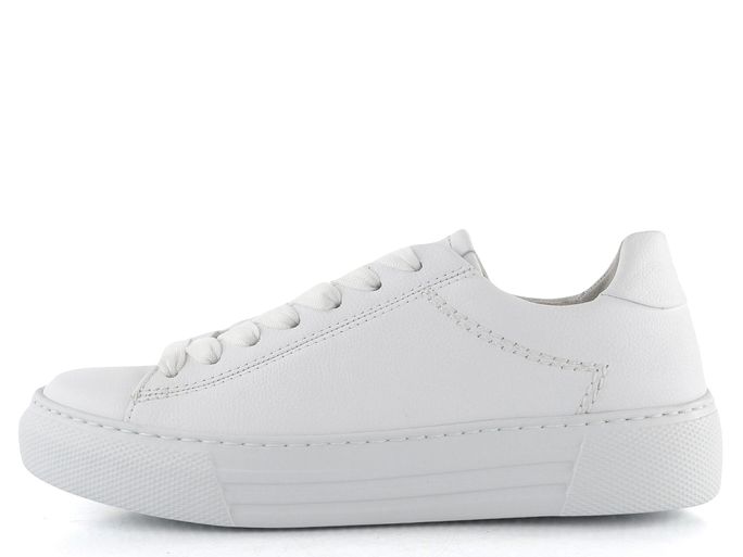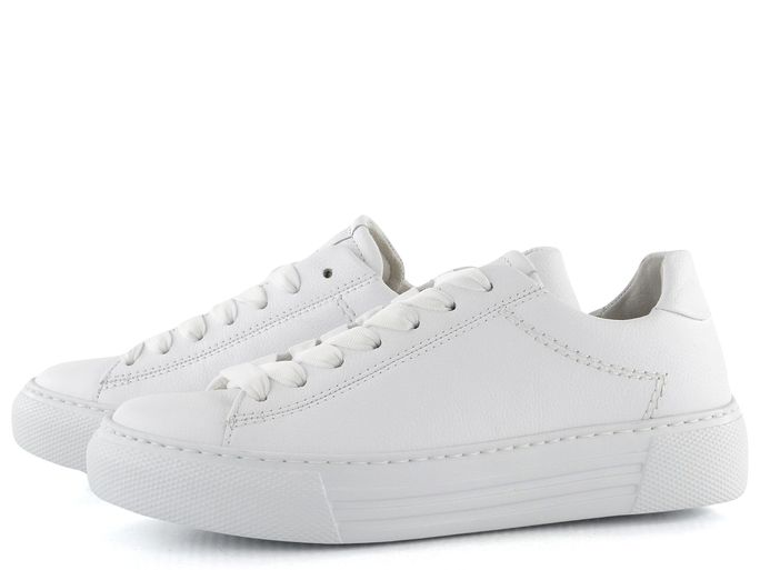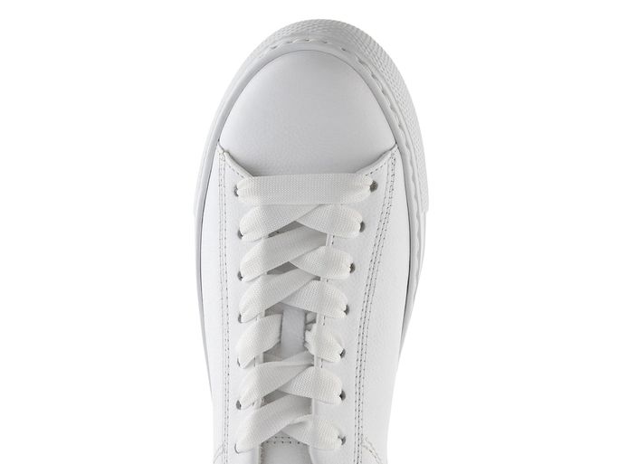 Dámské kožené tenisky v bílé barvě, se šněrováním, vyjímatelnou stélkou a vyšší pohodlnou podešví.