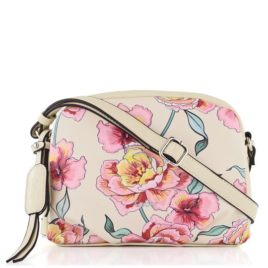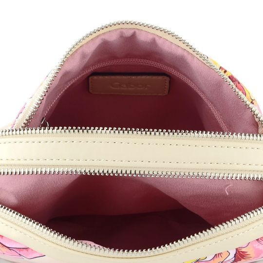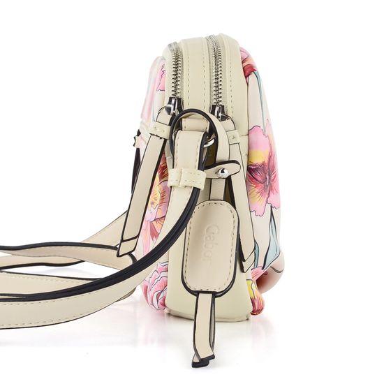 Dámská crossbody kabelka od značky Gabor je ideálním doplňkem pro jarní a letní sezónu. Kabelka vyniká svým něžným designem a kvalitním zpracováním z hladké syntetiky. Světlá béžová barva s květinovým potiskem v odstínech růžové, oranžové, žluté a zelené barvy dodává kabelce elegantní a svěží vzhled. Praktický ramenní popruh s délkovou regulací (80–140 cm) zajišťuje pohodlné nošení. Kabelka disponuje dvěma zipovými kapsami shora, pohotovostní zipovou kapsičkou na zadní straně a vnitřní výbavou, která zahrnuje otevřenou kapsu na mobil a zipovou kapsu na cennosti. Rozměry: šířka 23 cm, výška 17 cm, hloubka 6 cm. Kabelka je navíc ozdobena odepínatelným přívěškem s logem značky. Tento model 9258-116 je nejen stylový, ale i praktický doplněk pro každou ženu, která ocení kvalitu a design.