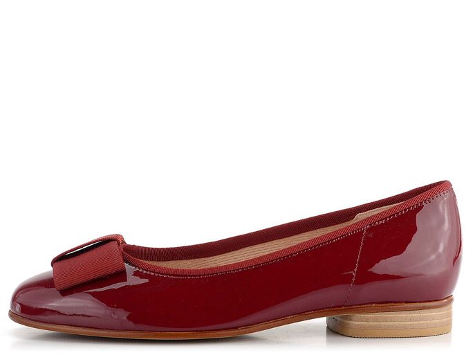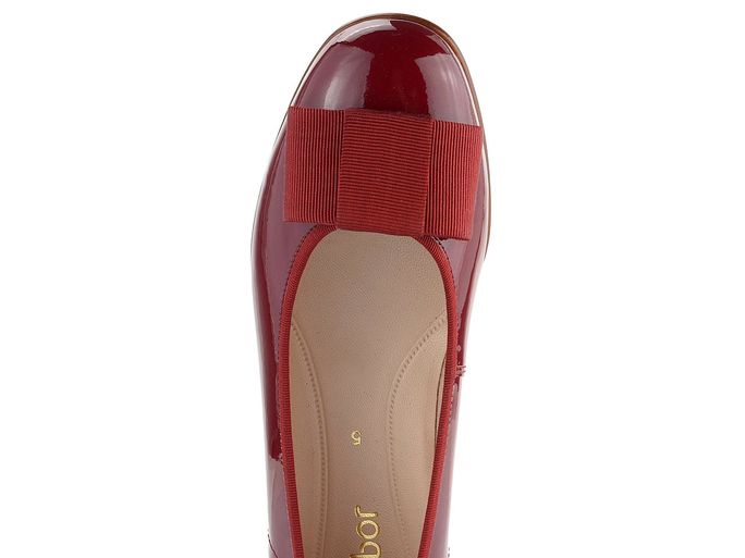 Elegantní a komfortní lakované baleríny od značky Gabor jsou ideální volbou pro podzimní a zimní sezónu. Tyto baleríny vynikají svou tmavě červenou barvou s nádechem do vínové, která dodá vašemu outfitu šmrnc. Kožený svršek s lakovanou úpravou je nejen stylový, ale i odolný. Mírně užší střih a pěkná kulatá špička zajišťují pohodlí při každém kroku. Zdobení mašlí ze široké stuhy a textilní paspulka v lemu dodávají balerínám jemný a ženský vzhled. Uvnitř najdete měkkou koženou stélku a textilní podšívku, která se postará o vaše pohodlí. Flexibilní syntetická podešev s jemným vzorkem a nízkým podpatečkem (2 cm) zajišťuje stabilitu a pohodlí při chůzi. Vyztužený opatek drží chodidlo pevně na místě. Tyto baleríny jsou skvělou volbou pro každodenní nošení do města, kanceláře nebo na lehkou procházku.