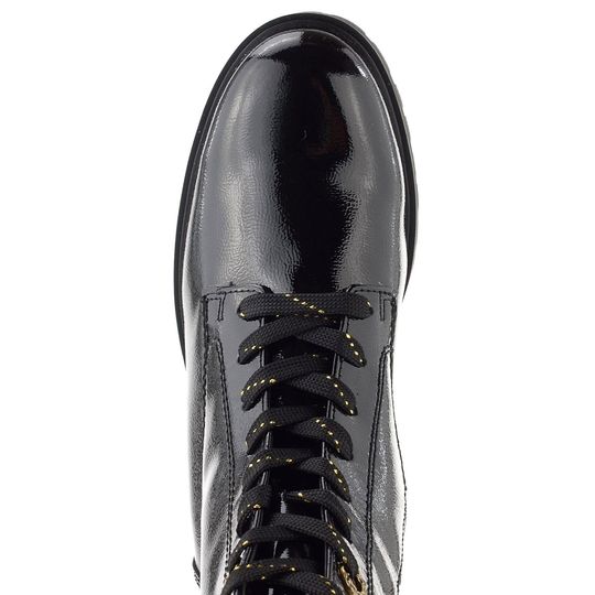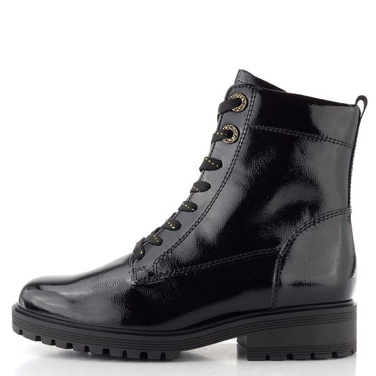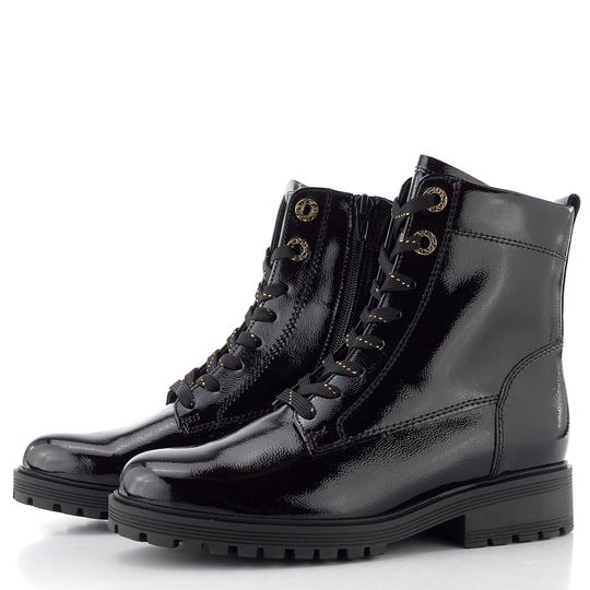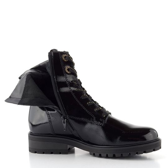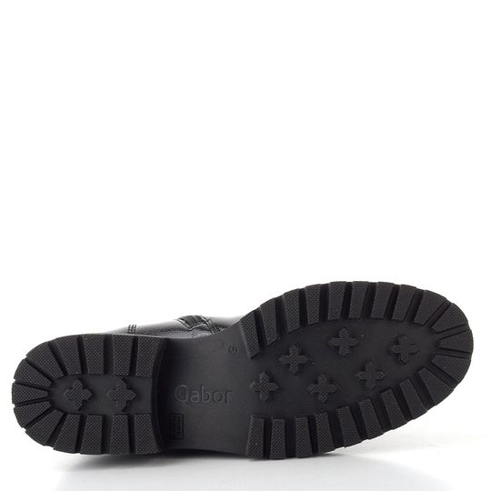 Dámská kotníčková obuv od značky Gabor v lakovaném černém provedení je ideální volbou pro podzimní a zimní dny. Je navržena s ohledem na prostornou kulatou špičku, což ji činí vhodnou pro širší typ chodidla díky střihu H. Vyrobena z jemně mačkané lakované kůže, nabízí nejen styl, ale i pohodlí.