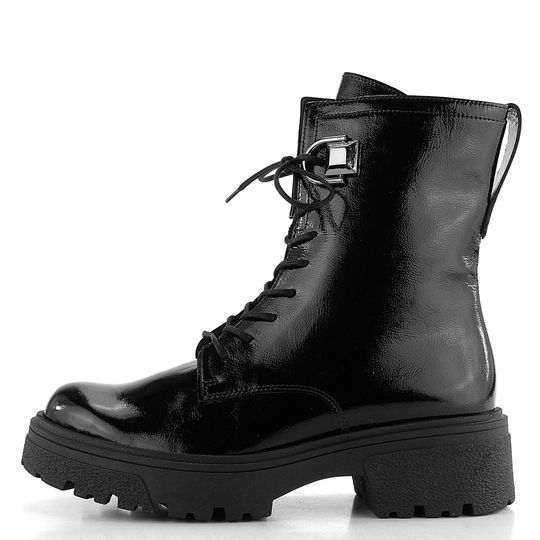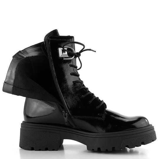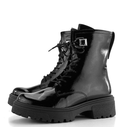 Luxusní kotníkové boty od značky Gabor představují ideální volbu pro podzimní a zimní sezónu. Díky lakované povrstvené kůži a černé barvě zaujmou na první pohled. Boty se mohou pochlubit kulatou špičkou a designovým šněrováním s kulatými tkaničkami a kovovými poutky, což dodává obuvi moderní vzhled. Pro snadné obutí slouží postranní zip. Uvnitř najdete teplejší podšívku z hebké vlasové textilie, která zajišťuje pohodlí i v chladnějších dnech. Vyjímatelná stélka s textilním potahem a zpevněný vnitřní opatek přispívají k maximálnímu komfortu při chůzi. Boty jsou vybaveny robustní podešví s hrubým vzorkem a širokým podpatkem o výšce 5,2 cm, což zajišťuje stabilitu a pohodlí. Výška kotníku je 17 cm, což poskytuje dostatečnou ochranu a podporu. Tyto boty jsou vyrobeny lepeným způsobem, který zaručuje jejich trvanlivost.