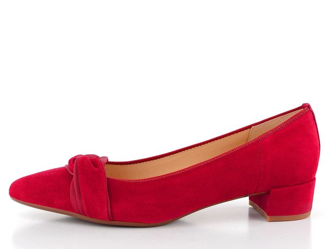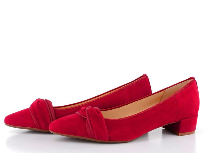 Dámské luxusní a elegantní lodičky v sytě červeném provedením s řaseným uzlem na špičce.