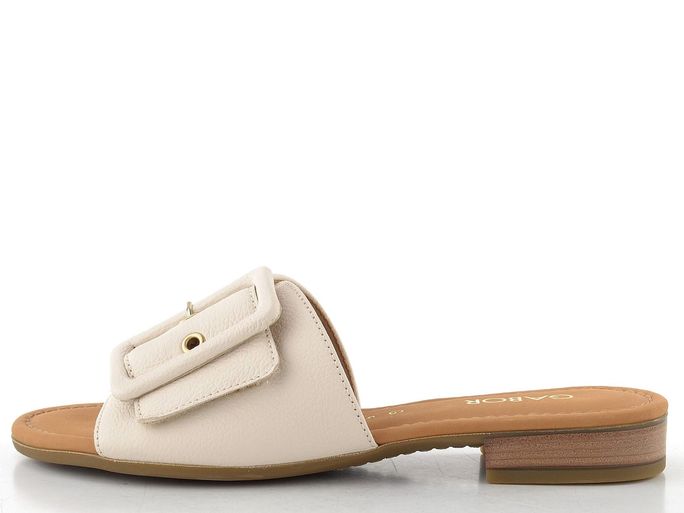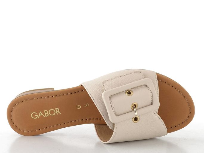 Luxusní pantofle značky Gabor jsou ideálním doplňkem pro jarní a letní sezónu. Tyto elegantní páskové boty v jemně béžové barvě spojují styl s pohodlím. Svršek z poddajné kůže s jemnou strukturou zajišťuje příjemný pocit na noze, zatímco textilní podšívka na rubové straně pásku dodává extra komfort. Dominantní spona s délkovou regulací a funkčním suchým zipem umožňuje snadné přizpůsobení.