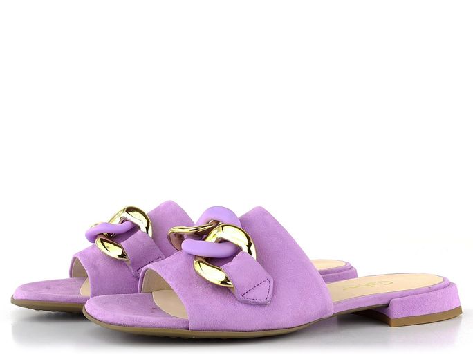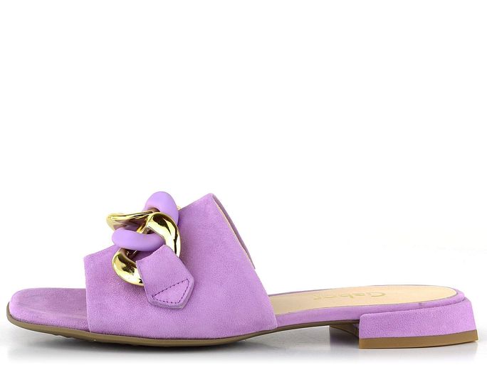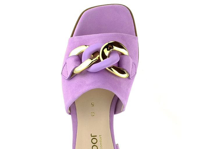 Objevte dokonalé spojení elegance a pohodlí s dámskými luxusními pantoflemi od značky Gabor. Tento model z kolekce jaro/léto 2023 je skvělou volbou pro ženy, které hledají stylové a kvalitní obutí. Pantofle jsou vyrobeny z měkké a poddajné semišové kůže v krásné šeříkové barvě s nádechem do růžové. Dominantní plastový řetěz ve fialové a zlaté barvě dodává těmto pantoflím jedinečný vzhled.