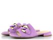 Dámské semišové pantofle s výrazným řetízkem a nízkým širokým podpatkem.