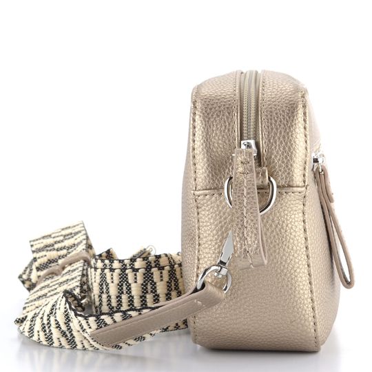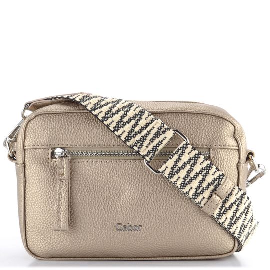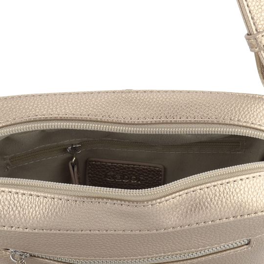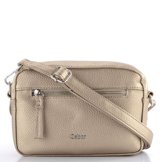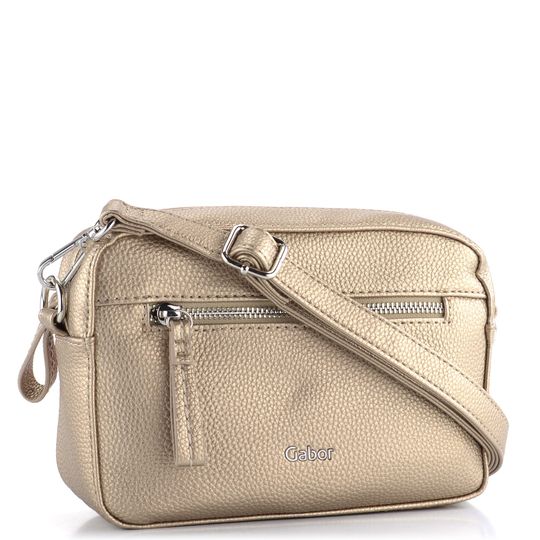Elegantní a praktická, malá crossbody kabelka Silena Metallic Rose od značky Gabor je ideálním doplňkem pro každou sezónu, zejména podzim a zimu. Kabelka je vyrobena z poddajné strukturované syntetiky v světlé zlaté metalické barvě s platinovým nádechem, což jí dodává luxusní vzhled. Kování ve stříbrné barvě podtrhuje její sofistikovaný design.