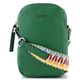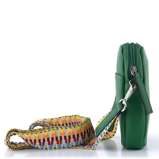 Malá dámská crossbody kabelka v syté zelené barvě s vyměnitelnými popruhy.