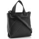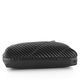 Malá dámská kabelka v černé barvě s plastickým vzorem na přední straně, madly do ruky a nastavitelným crossbody popruhem.