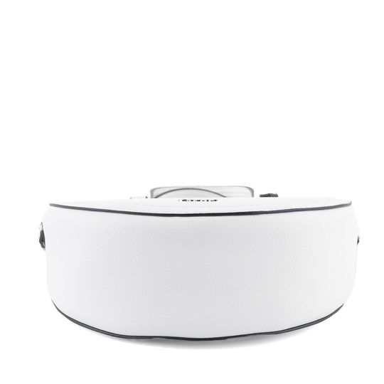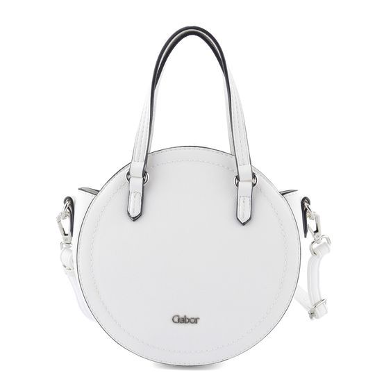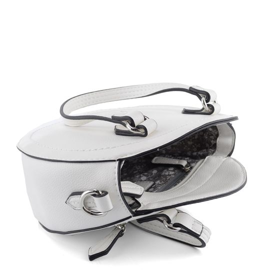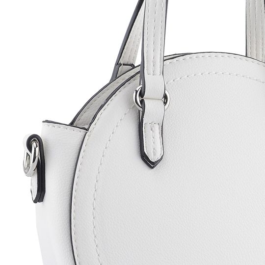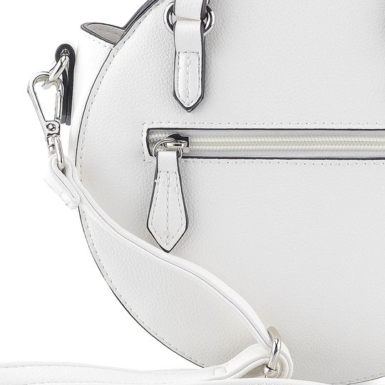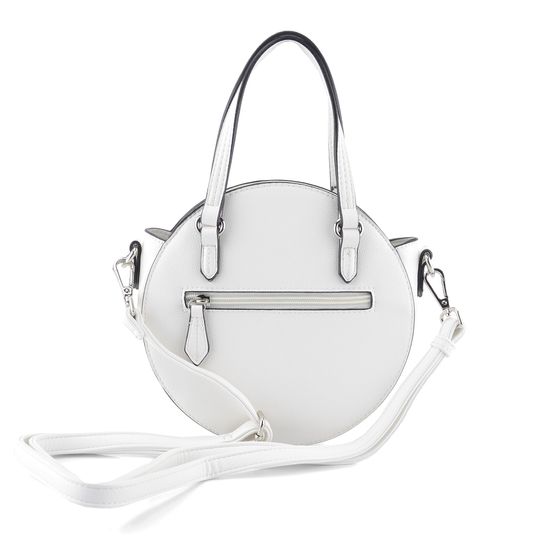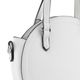 Dámská trendy kulatá crossbody kabelka v odražené bílé barvě.