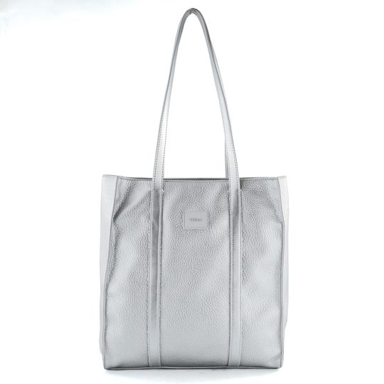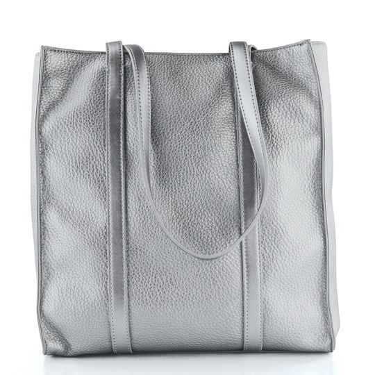 Prostorná dámská kabelka v jednoduchém střihu a módní metalické barvě.