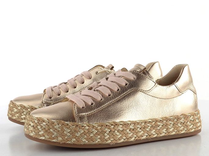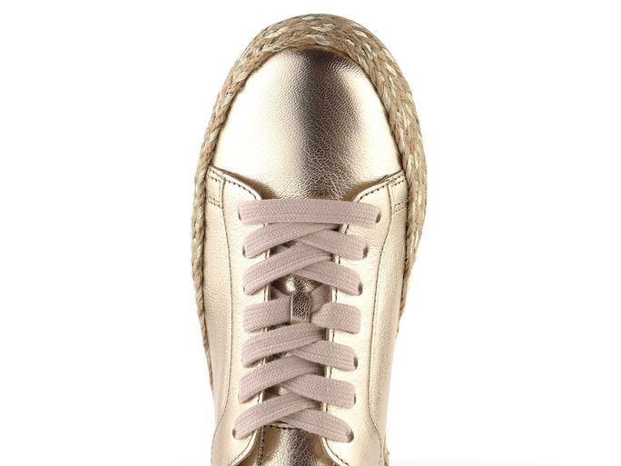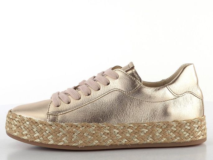 Dámské komfortní tenisky z metalické kůže, s vyjímatelnou vložkou a rovnou jutovou platformou.