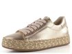 Dámské tenisky od značky Gabor kombinují metalickou eleganci s přírodními prvky, což je činí ideální volbou pro ty, kdo hledají stylovou a pohodlnou obuv na jarní a letní dny. Svršek z metalické kůže s přirozenou strukturou dodává botám unikátní vzhled. Zlatavě béžový odstín je snadno kombinovatelný s různými outfity. Klasické šněrování a vypolstrovaný lem a jazyk zajišťují komfort při každém kroku. Vyjímatelná kožená vložka s podporou podélné klenby podporuje zdravý pohyb chodidla. Lehká platforma opletená jutou v přírodní a zlaté barvě dodává botám moderní vzhled a pohodlí.