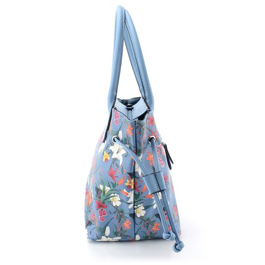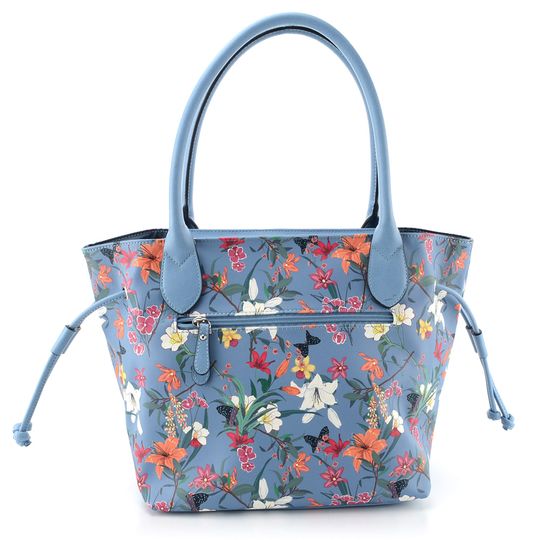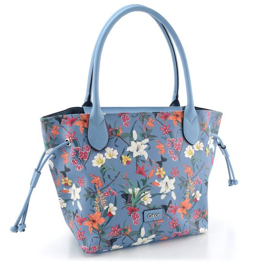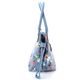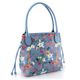 Originální dámská kabelka v modré barvě s pestrobarevným potiskem.