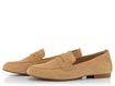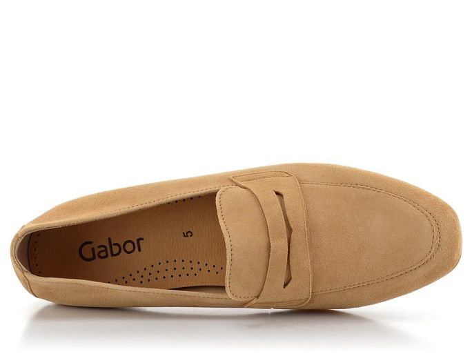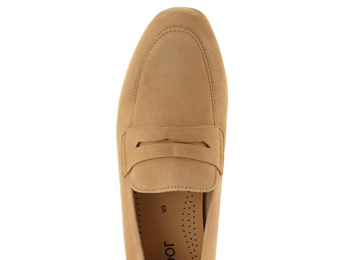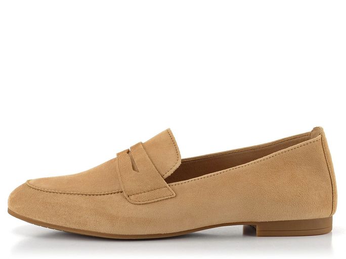 Pohodlné dámské mokasíny v barvě karamelu s ozdobným páskem přes nárt.