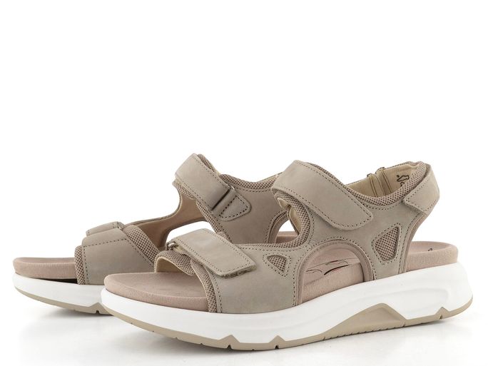 Pohodlí a styl se setkávají v těchto dámských vycházkových sandálech od značky Gabor. Vyrobené z nubukové kůže v elegantní šedobéžové barvě, tyto sandály nabízejí pohodlný střih s kulatou špičkou a třemi pásky, které se snadno přizpůsobí díky upínání na suchý zip.