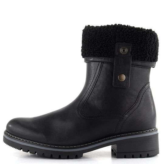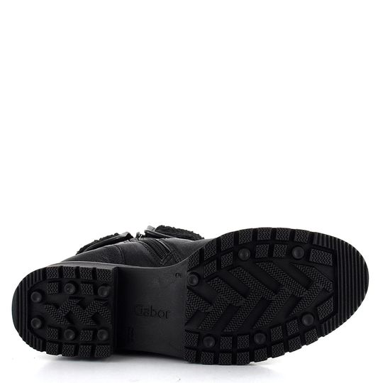 Dámské kotníkové boty od značky Gabor jsou ideální volbou pro podzimní a zimní měsíce. Kotníky jsou vyrobeny z poddajné hladké kůže v kombinaci se strukturovanou syntetikou v lemu, což zajišťuje nejen atraktivní vzhled, ale i vysokou odolnost. Beránkový lem lze nosit zvýšený nebo ohrnutý a snadno jej připnete pomocí kovových patentků. Postranní zip usnadňuje obutí a vnitřní podšívka z umělého beránku zajistí, že vaše nohy zůstanou v teple. Měkká vyjímatelná stélka potažená beránkem a bytelná latexová podešev s hrubým vzorkem a širokým podpatkem (4,5 cm) zajišťují maximální komfort a stabilitu. Výška obuvi je 17 cm (bez podpatku) a neohrnutá varianta dosahuje výšky 22,5 cm. Tento model je vyráběn lepeným způsobem, což přispívá k jeho trvanlivosti a kvalitě. Dopřejte si pohodlí a styl s těmito kotníkovými botami od značky Gabor.