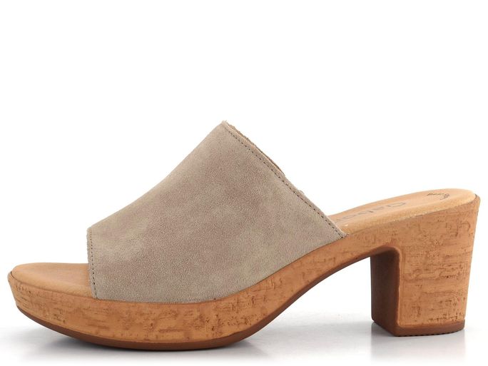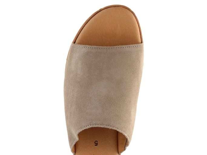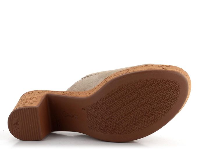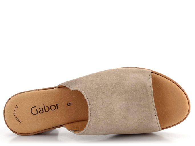 Dámské pantofle značky Gabor jsou ideální volbou pro ty, kteří hledají pohodlí a styl v jednom. Tyto pantofle z kolekce jaro/léto 2024 se vyznačují svrchní částí z jemné semišové kůže v světle béžovém odstínu s nádechem do šedé. Široký pásek s vnitřní pružinkou zajišťuje optimální padnutí a pohodlí při každém kroku. Podšívka je z hladké kůže, což zvyšuje komfort nošení. Pantofle mají měkkou koženou stélku, která poskytuje příjemný pocit po celý den. Výraznou vlastností je vysoká platforma v dekoru korku a stabilní, široký podpatek o výšce 6,7 cm. Díky lepenému výrobnímu způsobu jsou pantofle pevné a odolné. Tento model je součástí linie Gabor Best Fitting, což znamená, že je vhodný pro mírně užší až standardní typ chodidla. Perfektní volba pro každodenní nošení i formálnější příležitosti.