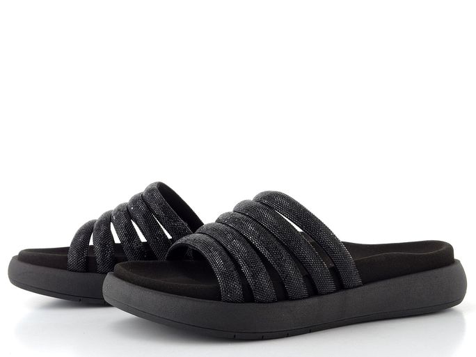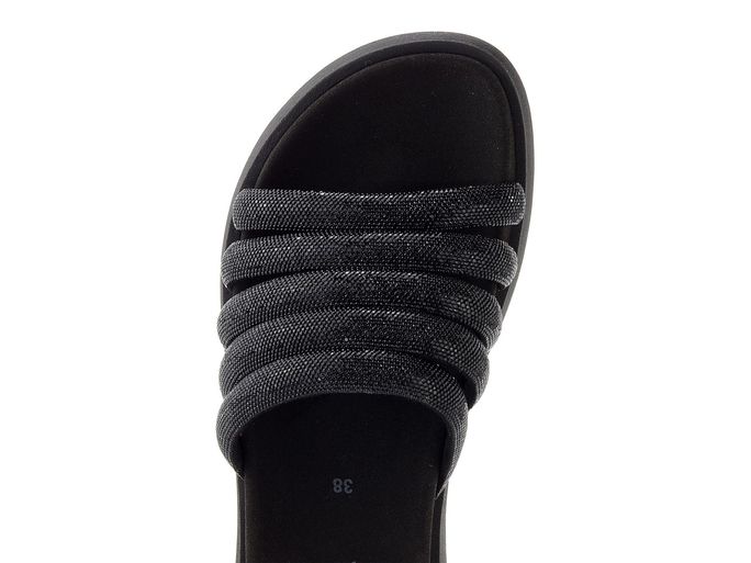 Dámské pohodlné pantofle na platformě, s blyštivými pásky a s anatomicky tvarovanou stélkou.