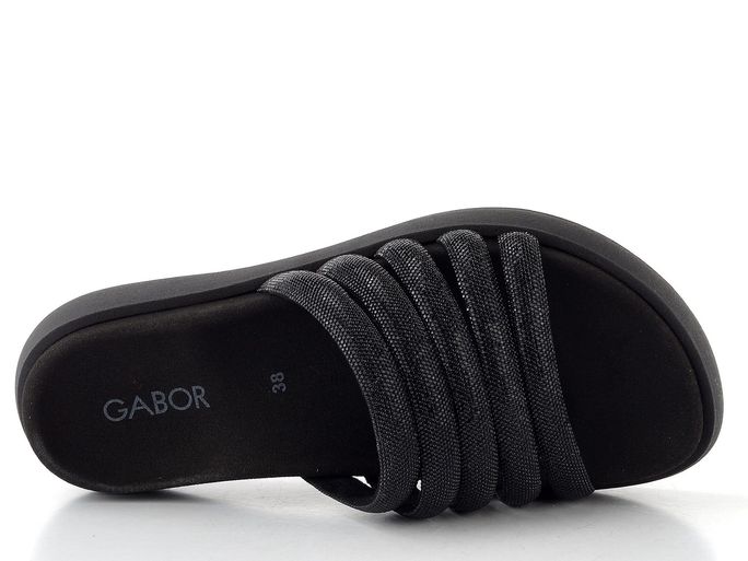 Vysoce komfortní pantofle značky Gabor jsou ideální volbou pro jarní a letní dny. Tyto páskové boty v elegantní černé barvě s metalickými akcenty přinášejí nejen styl, ale i pohodlí. Širší pásky zdobené blyštivými štrasovými kamínky dokonale kopírují tvar prstů, zatímco anatomicky tvarovaná stélka potažená broušenou textilií zajišťuje příjemný došlap. S výškou podpatku 3 cm a platformou vyrobenou z latexu se můžete těšit na měkkost a lehkost při každém kroku. Tyto pantofle jsou spojeny lepeným výrobním způsobem, což zaručuje jejich kvalitu a trvanlivost. Ideální volba pro ženy, které hledají kombinaci módy a komfortu.
