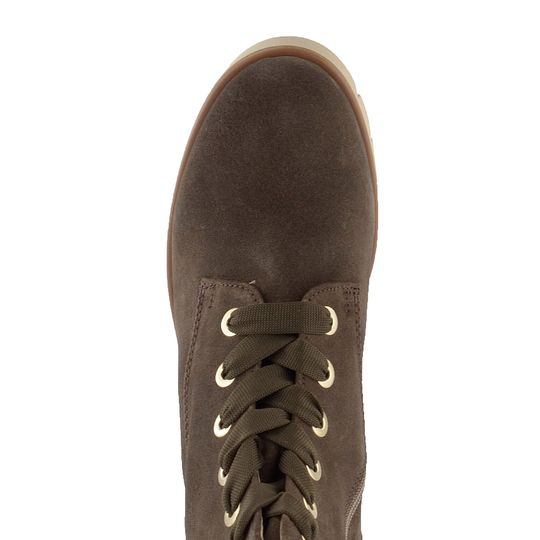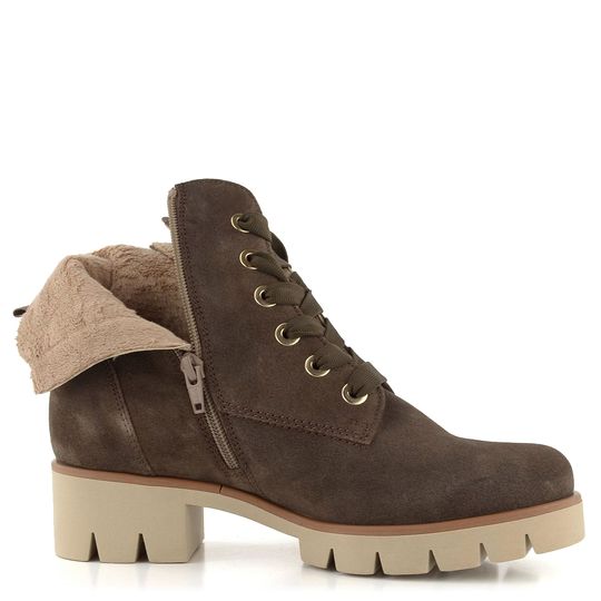 Dámská obuv ve stylu pohorek ze semišové kůže, s teplou podšívkou a s pěknými kovovými očky v provazování.